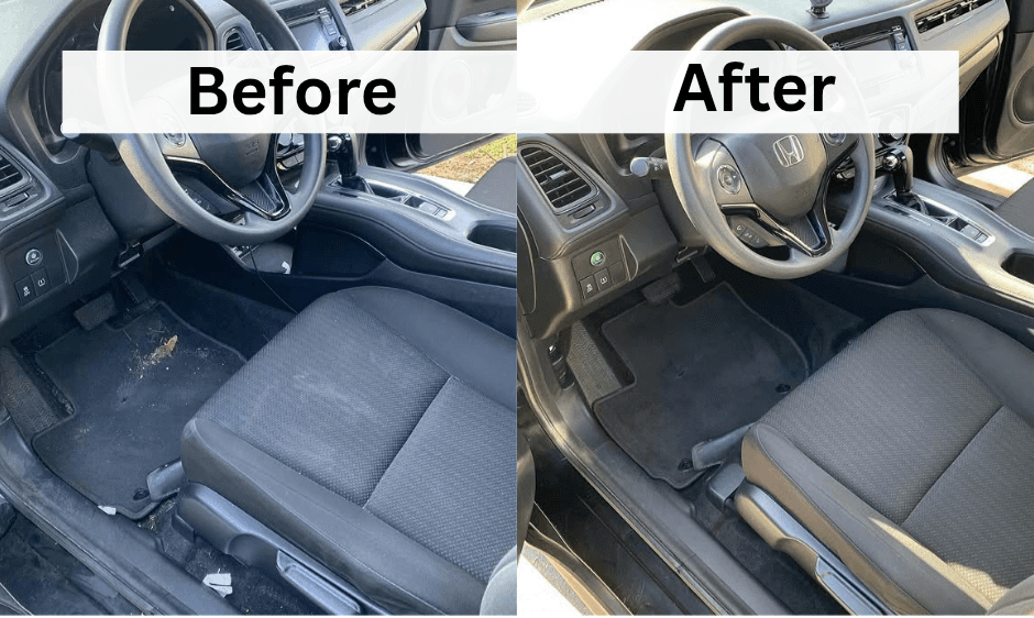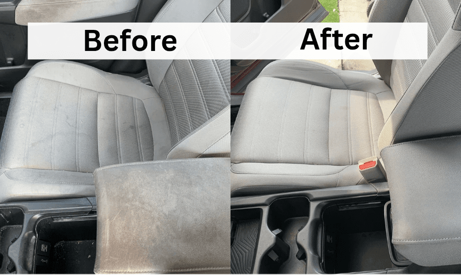 Interior carpets and fabric seats are shampooed and extracted to remove built-up dirt, spills, and surface residue. This process lifts grime from deep within the fibers, leaving fabrics visibly cleaner and refreshed.